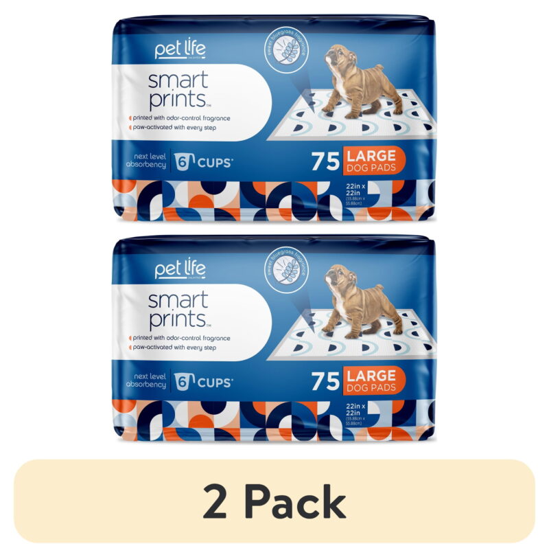 (2 pack) Pet Life Unlimited Dog Pads, Smart Prints, Large, Sunshine & Rainbows Print, 75ct
