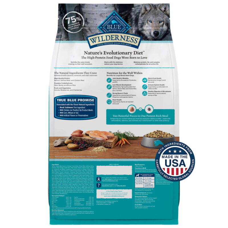 Blue Buffalo Wilderness High Protein Natural Adult Large Breed Dry Dog Food Plus Wholesome Grains, Salmon 24-lb