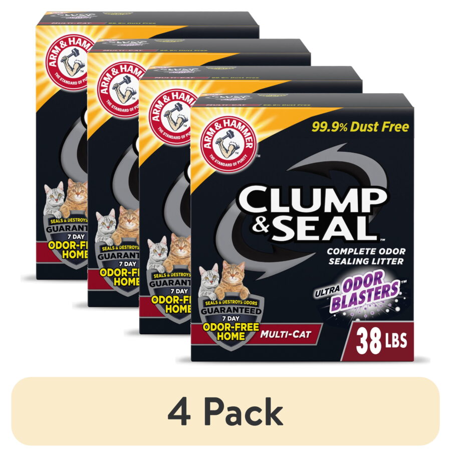 (4 pack) ARM & HAMMER Clump & Seal Cat Litter Multi-Cat Complete Odor Sealing Clay Clumping Cat Litter, 38 lb