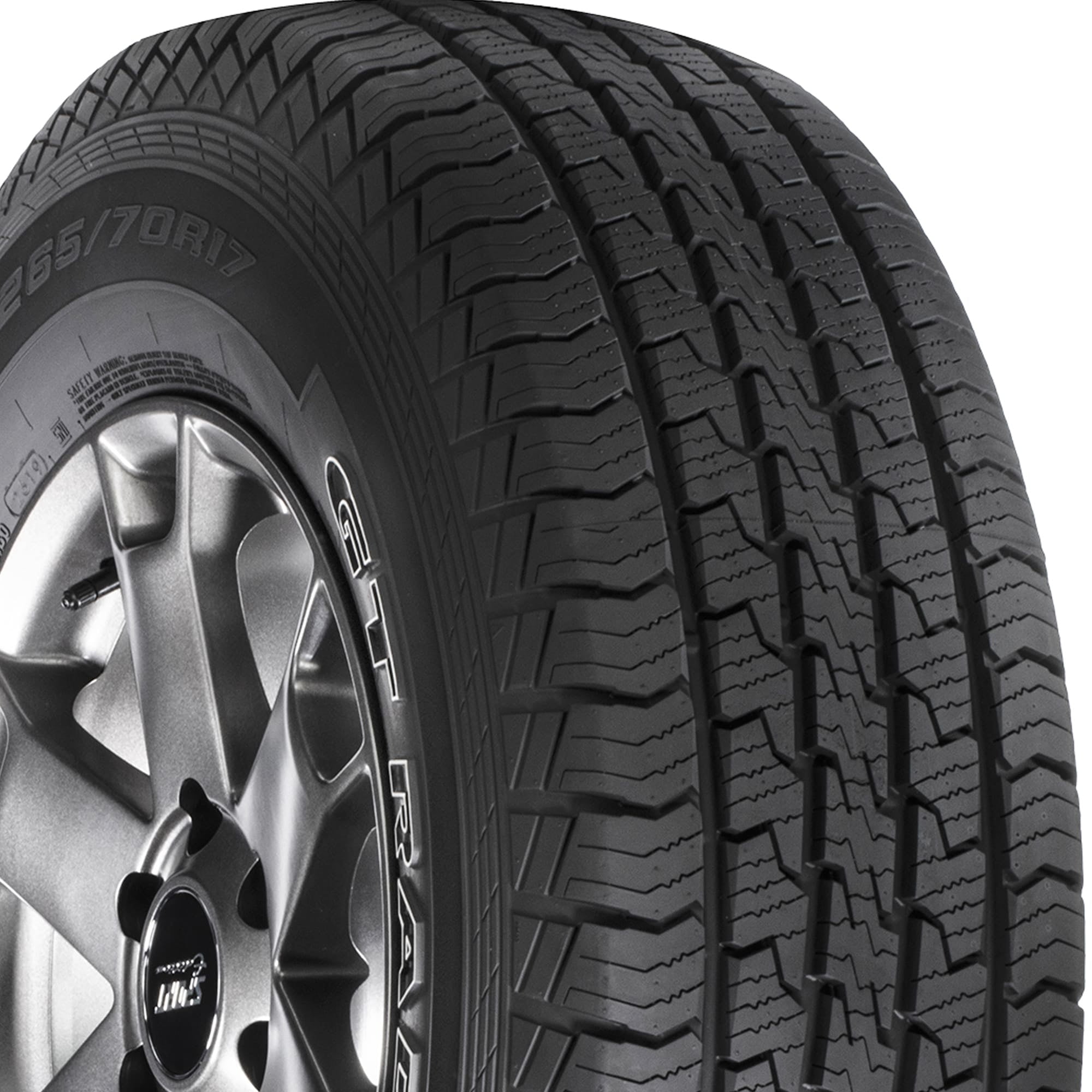 GT Radial’s Adventuro HT is an all-season, highway terrain tire that’s backed by a 60,000 mile limited manufacturer tread life warranty and 30 Day Test drive. Full-depth wave sipes create additional biting edges to boost traction on wet and snowy roads, and the Adventuro HT’s chamfered tread edges force water out of the tire to reduce the risk of hydroplaning on wet roads. A dual sidewall design allows drivers to choose the look of their ride, and the Adventuro HT is built with a continuous center rib that reduces braking distances and increases stability when driving at higher speeds.