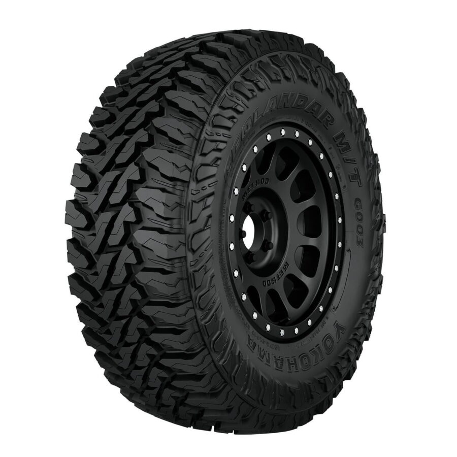 The Yokohama Geolandar M/T G003 is a mud-terrain tire that’s designed for SUVs, crossovers, and pickup trucks, and features an aggressive tread pattern for superb grip and traction and GEO-SHIELD technology that protects its casing and tread for longer tread life. While optimized void ratio and sipes provide shorter stopping braking distances and increased grip, the mud and stone ejectors clear tread consistently to limit stone drilling and improve traction. Protecting the mud-terrain tire are the sidewall armor and GEO-SHIELD technology that features a high turn-up carcass, a full nylon cap, and multiple sidewall plies. Backed by Yokohama’s 30-day satisfaction guarantee, the Geolandar M/T G003 is available in different sizes such as 15, 16, 17, 18, 20, 22, and 24 inches.