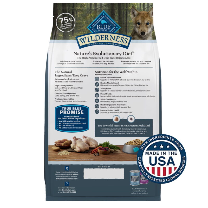 Blue Buffalo Wilderness High-Protein Natural Puppy Dry Food, Chicken Recipe, 28-lb Bag